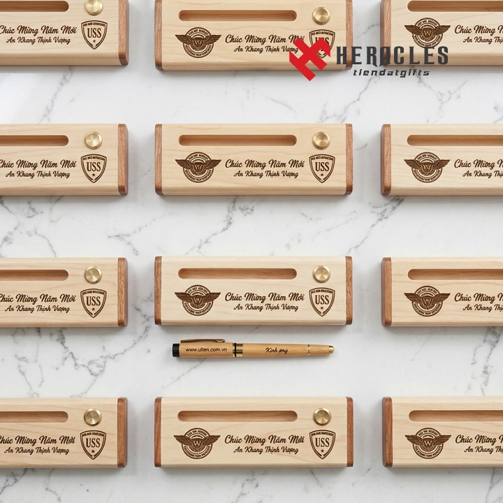 Bút khắc tên, bút gỗ khắc tên là món quà cá nhân hóa độc đáo, có thể khắc tên, lời chúc hoặc logo theo yêu cầu.