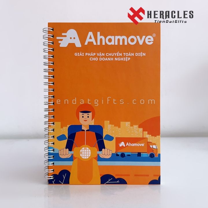Sổ Tay In Logo Giá Rẻ – Sổ Tay Lò Xo A5 & Bút Bi Quà Tặng Doanh Nghiệp Ahamove
