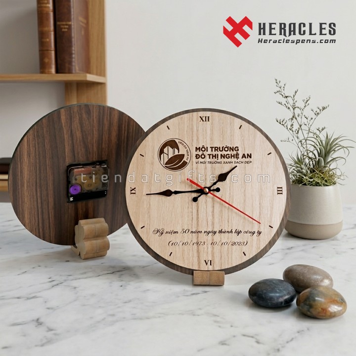 thì đồng hồ gỗ khắc logo kỷ niệm 50 năm là lựa chọn hoàn hảo.