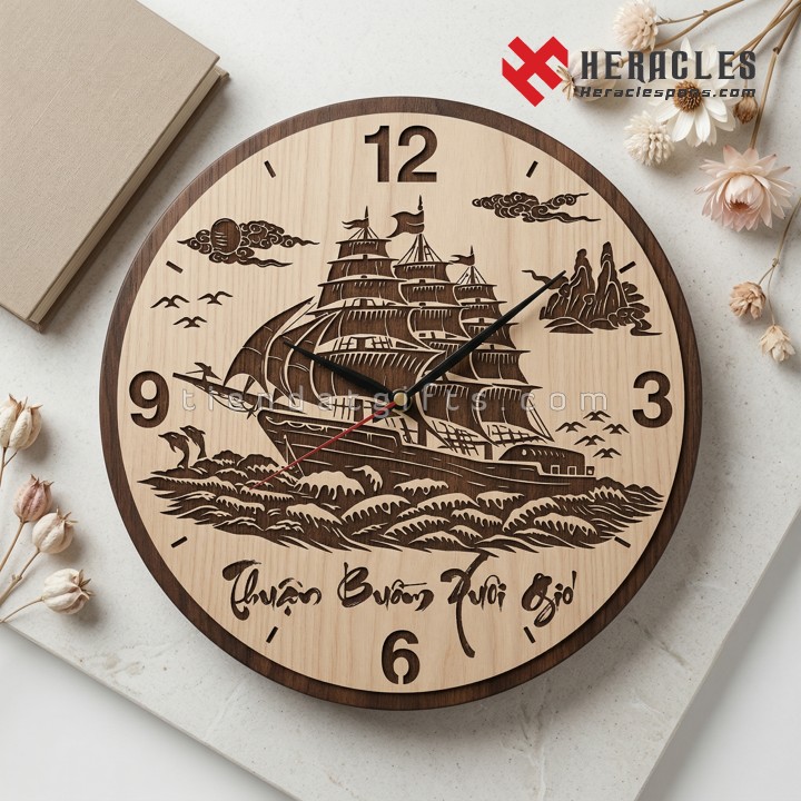 Khi kết hợp hình ảnh này với chất liệu gỗ sang trọng và kỹ thuật khắc laser tinh xảo, đồng hồ gỗ thuận buồm xuôi gió không chỉ là vật dụng xem giờ mà còn là món quà mang ý nghĩa phong thủy sâu sắc.